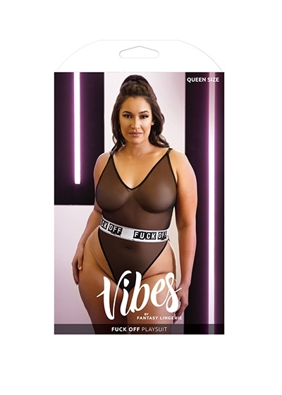 Cheeky Mesh Playsuit with "Fuck Off" Elastic Waistband