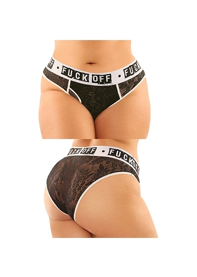 2 Piece Lace Boyfriend Brief & Lace Thong with "Fuck Off" Elastic
