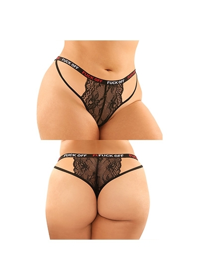 2 Piece Cutout Lace Panty & Caged Micro Thong with "Fuck Off" Elastic