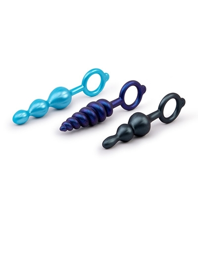 The three sizes of plugs let you size up or down for anal training, and the texture variety provides thrilling styles of stimulation. Each of the three plugs is designed to be 100% waterproof for safe usage in the bath or shower while paving the way for easy cleaning.