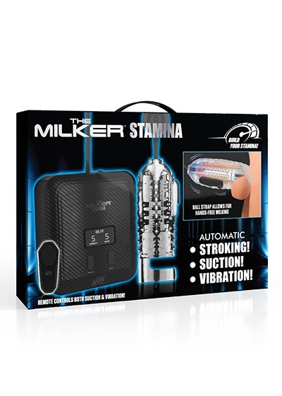 Want to dive into hours of pleasure and increase your sexual stamina? This Milker Stamina is for you! You deserve hands-free pleasure that builds in ecstasy, and keeps you right on the edge while training you for long nights of passion! With the intense Milker Stamina device, you can enhance your pleasure with our advanced automatic milker, engineered for the ultimate indulgence. This sophisticated device includes a TPE sleeve with a securing ring that wraps around the balls and acts as a C-ring, plus a powerful rechargeable bullet that vibrates in 3 speeds and 7 patterns and slips into a pocket on the side of the sleeve. Choose from 5 speeds and 5 suction patterns for a mindblowing experience with settings that are easily adjusted using the large blue buttoms on the device or via the battery-operated, remote. See what setting you're exploring and easily read the bright, LED display. The 46-inch hose, fitted with a circular valve, prevents fluid ingress into the machine. Ideal for globetrotters, it comes with a power adapter and interchangeable plugs for US, UK, EU, and AUS compatibility.