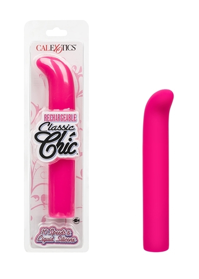 Welcome to a world of exquisite delight with the Rechargeable Classic Chic® Standard "G,” a liquid silicone "G" massager that is designed to elevate your pleasure experiences. With its easy push-button operation, this vibe is designed to deliver effortless satisfaction, allowing you to focus solely on the sensations at hand.
