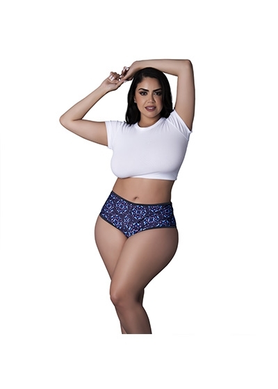 From the Hazy Dayz collection by Magic Silk, this style includes: a boy short featuring navy blue spandex printed with blacklight reactive neon pink and blue butterflies.