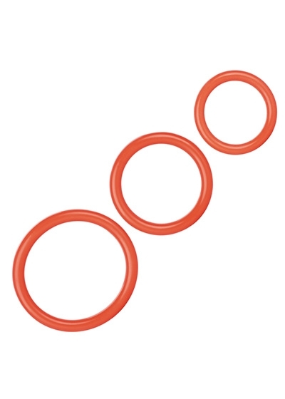 Enjoy triple the erotic sensations and pleasure with the Tri-Rings. The discreet erection enhancers are easy to use and great for instant performance elevation, whenever you are in the mood for sensual seduction and endless satisfaction. The rings are supplied in a choice of sizes for maximized and prolonged orgasmic ecstasy.The multi-purpose, reusable enhancers comprise of 3 different sizes that are designed to fit comfortably onto the erect penis, for stamina support and extended play fun. The sleek rings are made from smooth, flexible rubber and measure 1.75”/4 cm, 2”/5 cm and a generous 2.5”/6 cm. To use, slip the preferred ring size on to the erect penis, and slide down to the base. The rubber band provides support for longer lasting intimacy and rock hard erections. For increased pleasurable tingles and sensations, it is recommended that you always use a quality lube with this toy.The easy to use enhancers are ideal for the first time and experienced users and perfect for spontaneous, unlimited play. The trio of rubber erection enhancer rings are great for self-gratification exploration, and for extended couple’s foreplay fun. Use the medium, large and extra large rings to enhance stamina and performance for a mind-blowing experience every time. Before and after every use, clean the rubber rings with a toy cleaner spray or wash in mild soapy water.