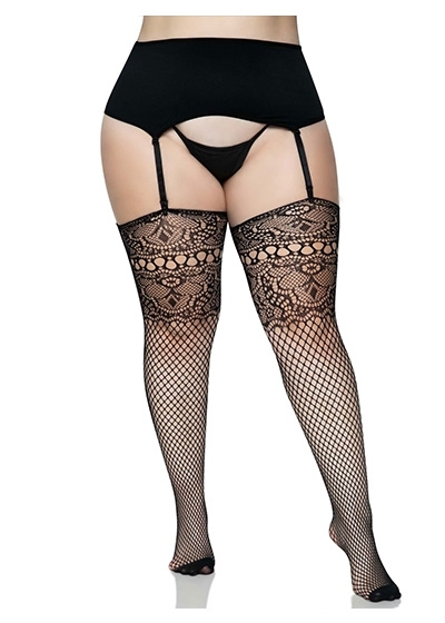 Lace Top Fishnet Backseam Stockings - 1x/2x - Black