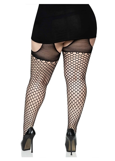 Dare to go bold in the plus size Addison oval net suspender hose by Leg Avenue. These curve-hugging stockings combine the sexiest details of crotchless lingerie with the classic looks of fishnet tights for a look that’s simply stunning. Edgy oval net with a comfort-stretch opaque top make these the perfect plus size tights for day or night looks.
