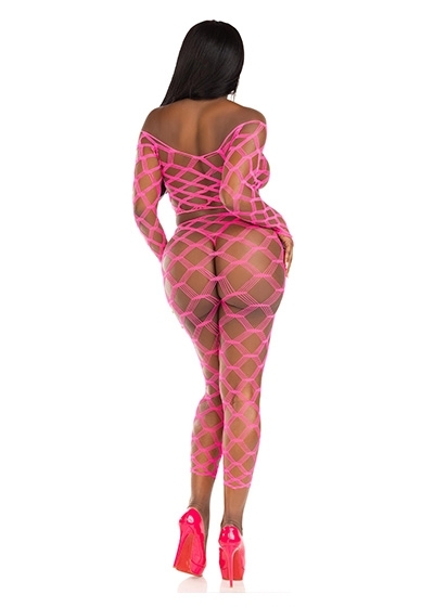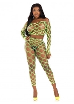 Show off all your assets in this 2 PC lingerie set by Leg Avenue. The ultra versatile look features a wide neck fishnet crop top with long sleeves and matching high waist tights.
