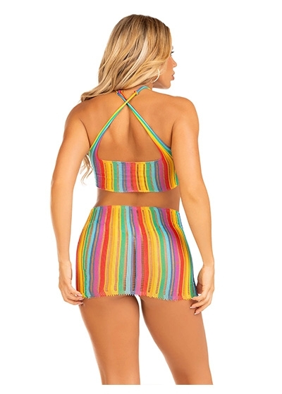 Steal the spotlight in this in this playful rainbow mini dress by Leg Avenue. With its alluring cross-over straps, daring cut-outs, and vibrant rainbow stripes, this versatile lingerie dress is perfect for turning heads as a swimsuit coverup or lighting up the night as a clubwear dress.