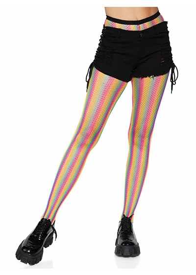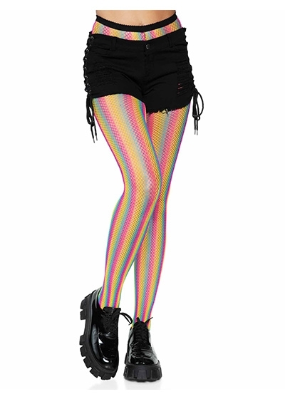 The Tay Rainbow Striped Fishnet Tights by Leg Avenue are an explosion of color. These festive novelty fishnet tights are sure to make you stand out! Pair it with halloween costumes, rave outfits, sexy lingerie, and more!