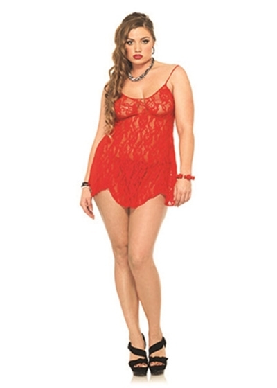 2 pc set. Rose lace flared chemise and matching g-string. One size fits most 150-200 lbs. Packaging: Box.