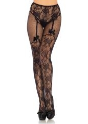 Fleur De Lace Suspender Illusion Crotchless Tights with Bow Accent. One size fits most 90-160 lbs.
