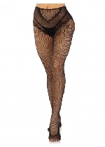 French Cut Crotchless Fishnet Tights with Heart Backseam and Faux Lace Up Back