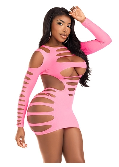 Opaque Shredded Cut Out Mini Dress - One Size - Neon Pink\Black\Green