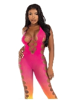 Seamless Ombre Faux Lace Up Footless Bodystocking with open cuts going down all along the sides revealing your legs, thighs and hips. The open holes are also in the front of the chest making a V cut with revealing cuts on the sides revealing those sexy side boobs!