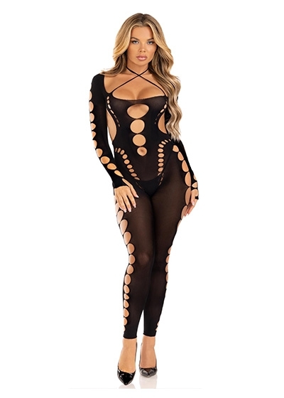 Seamless Long Sleeve Opaque Cut-Out Footless Bodystocking.