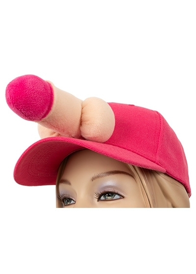 The pink baseball cap has an eye-catching, velvety soft plush penis and testicles in a contrasting colour. The penis and testicles are above the visor. It is a cheeky item for carnival season, theme parties, hen/stag parties, festivals etc. The cap has a snapback fastener – adjustable head circumference.