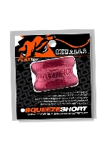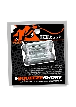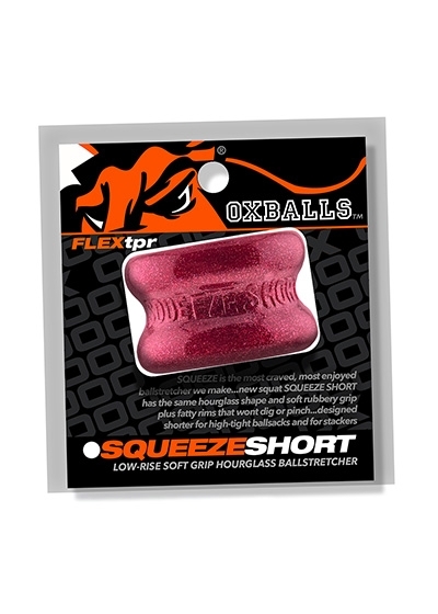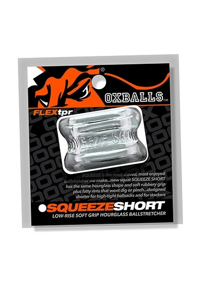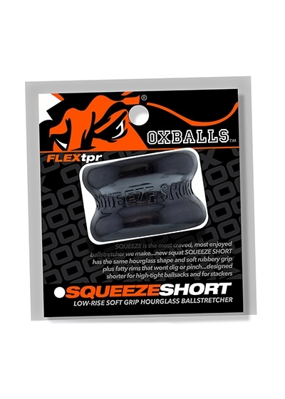 Tips for novice ballstretchers: Warm sacks hang, so start in the shower or tub. Rub a bit of waterbase or hybrid lube (we recommend our OXLUBE of course) on the inside and lip of SQUEEZE SHORT. While standing or on your knees, stretch open the ballstretcher under your nutbag and lift SQUEEZE up and around your nuts and release into place. As with all play—stop if it feels uncomfortable.