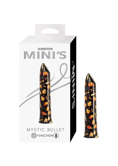 Unleash dark, mysterious vibes with the Nasstoys Mini’s Mystic Bullet, a compact powerhouse with a magical twist. Featuring a bold black design adorned with gems and miniature swords, this USB-rechargeable bullet brings a little mystery to your pleasure ritual. It’s 10 powerful vibration functions are housed in a sleek, travel-friendly body made of body-safe ABS & silicone, perfect for solo sessions or slipping into toys designed for bullet vibes, like harnesses or dildos with a bullet compartment. Don’t be fooled by its size, this mini vibe delivers strong, whisper-quiet stimulation wherever you want it. The flat side of the tapered tip offers precise control, while its splash-proof finish makes cleanup simple with toy cleaner or mild antibacterial soap. Use with any type of lubricant to boost comfort and intensify sensation. Just make sure to charge it fully before first use to prime the battery for peak performance. Whether you’re exploring on your own or pairing it with another toy, the Mystic Bullet is your go-to for powerful, stylish pleasure.