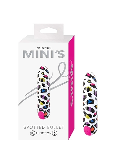 Add a playful pop of power to your pleasure collection with the Nasstoys Mini’s Spotted Bullet. This compact vibe may be small, but it packs a punch with 10 powerful vibration functions that range from steady rumbles to teasing pulses. The rainbow animal print design gives it a fun, wild vibe that looks as good as it feels. Made from body-safe ABS & silicone and splash-proof for easy cleaning, it’s travel-ready, USB rechargeable, and quiet enough for discreet use. Whether you’re using it solo or slipping it into a harness or toy that takes a bullet, this vibe adds instant excitement. The Mini’s Spotted Bullet is more than just cute, it’s seriously functional. The rounded, tapered tip makes for comfortable, targeted stimulation, while the compact shape means you can take it anywhere (even if it’s just from your nightstand to the bath). Use it with your favorite lube, it’s compatible with all formulas, for smoother sensations and better glide. Just be sure to fully charge it before your first play session to prime the battery, and clean it after each use with toy cleaner or mild antibacterial soap. This bullet is a playful, powerful way to spice up your routine, no batteries required.