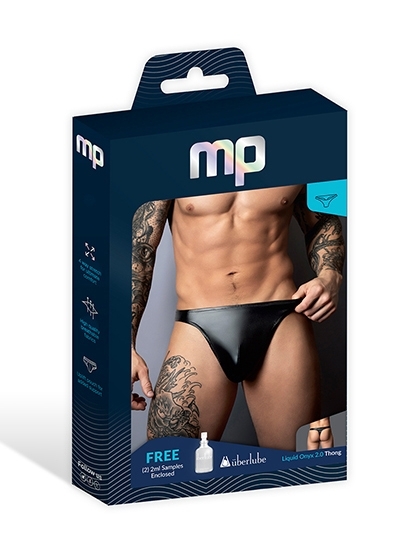 From the Liquid Onyx 2.0 collection by Male Power, this bold thong features a contoured pouch for a perfect fit, with one-inch sides and a daring T-back rear for an edgy, minimalist look.
