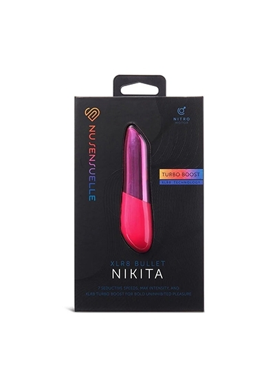 Nikita redefines the bullet, fusing raw power with elegant precision. At its core, the Nitro motor delivers intense ecstasy in seconds. Sculpted with a soft, feminine silhouette and angled tip, it hugs every contour for targeted pleasure. With seven fierce speeds and the XLR8 turbo boost, Nikita seduces with finesse and dominates with force—pleasure, perfectly balanced.