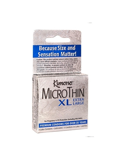 Kimono MicroThin XL is thin, strong, and extra large for a comfortable fit. Extra-large 56mm base, flare shape More head room 5x tested for reliability Exceeds US & International (ISO) standards for strength Premium, vegan-friendly natural latex No unpleasant latex smell Formulated without parabens, glycerin, spermicide, or nitrosamines.
