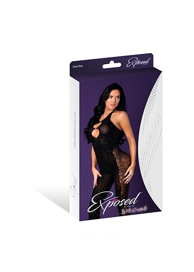 Seamless Halter Body Stocking Black W/ Rhinestones One Size