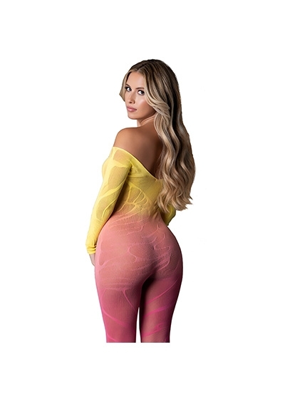 Seamless Long Sleeve Body Stocking Ombre Sunset One Size