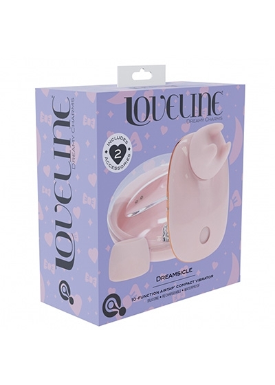 Dreamsicle is a 2-in-1, 10-function tapping and sucking vibrator powered by an advanced F1 motor and AirTap® Technology for magical sensations. Rechargeable and compact, it charges and stores in an adorable case and comes with two interchangeable head attachments, perfect for discreet pleasure anytime, anywhere!