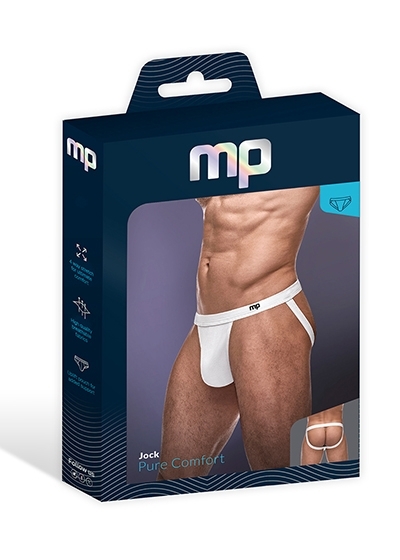 From the Pure Comfort Modal collection by Male Power, this style includes: A sport jock featuring a support pouch, modal covered no roll waistband, butt boosting modal covered leg bands, and a stamped rubberized logo.