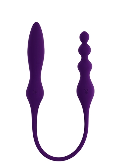 What are you doing tonight? Oh...This & That! Experience the unexpected sensations that a double-ended toy can deliver. On one end is a flexible, bulbous Vibrator that finishes with a targeted, tapered tip – and on the other end is a flexible, bulbed Vibrating Plug that features 3 round spheres in graduating size and a fourth larger oval that acts as a safety stopper. A thin silicone cord joins the two ends, giving you (or more) lots of freedom to play – up to 32’ with the remote control. Ramp up to 10 speeds and rhythms of vibration for intense pleasure that builds to an extraordinary climax – even under water as it’s completely submersible.