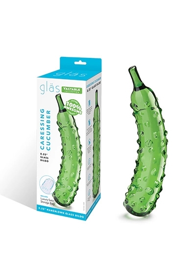 Experience the ultimate in pleasure with the Caressing Cucumber 8.25" Glass Dildo! This elegantly designed handblown glass dildo features a realistic cucumber shape with delightful textured bumps, perfect for delivering satisfying sensations. With an insertable length of 7.25”, it caters to users of all experience levels. Easy to clean and compatible with all lubricants, this delightful dildo is a must-have for your collection. Get ready to enjoy a refreshing adventure!