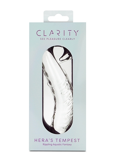 Hera’s Tempest is a 5.5-inch glass dildo with a sculptural circular handle, blending graceful design with precise, controlled pleasure.