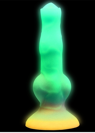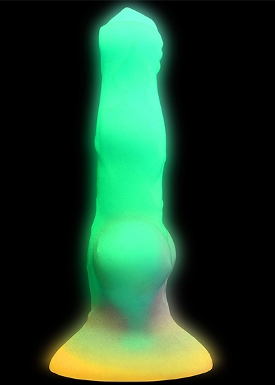 - Glowing Fantasy Dong: This alien Astro Cock dong has a vibrant array of pink, blue, purple, and orange during the day and glows bright green and yellow at night! Enjoy the long, thick shaft, the smooth, round head, and the bulging knots at the base of the shaft!