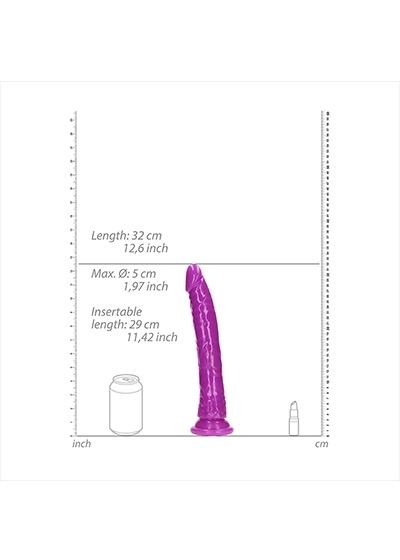 Realrock Glow In The Dark Slim Dildo 11'' Neon Purple