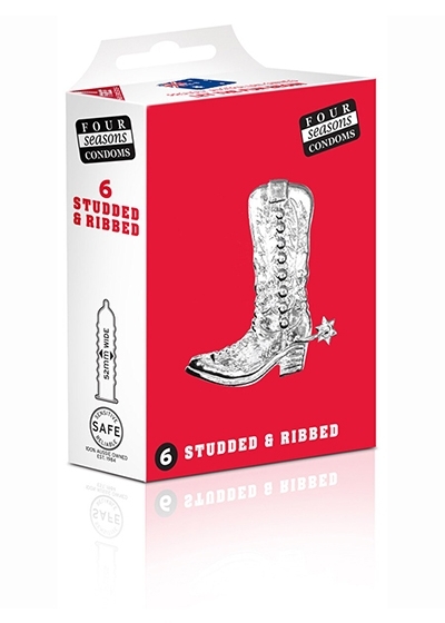 For Extra Stimulation. Box of 6. Four Seasons Studded Condoms have delicately raised studs for added pleasure and stimulation. Ultra Sensitive, Transparent, Lubricated, Reservoir End.