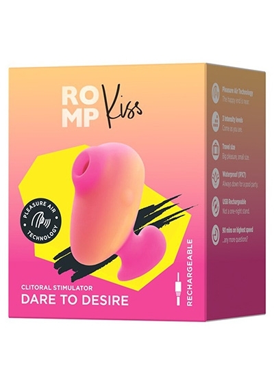 ROMP Kiss combines the power of a clitoral suction stimulator with a discreet, travel ready size. Cute and compact, its ergonomic design and 3 intensity levels let this toy seal solo and partnered pleasure with a sexy, playful Kiss!