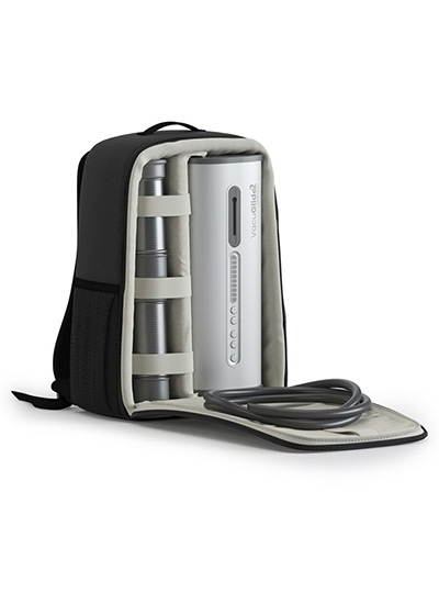 Discretion and storage are important. Every VacuGlide comes packed inside of a backpack with a dedicated space for each component.