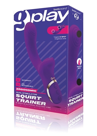 Introducing G-Play from Bodywand! The Dual Stimulation Squirt Trainer combines the best of both worlds with 10 different modes of vibration on top of 10 stimulating levels of suction. The g-spot suction stimulates the clitoris directly with powerful, pleasurable suction while the rippled tip targets the g-spot with deep, rumbly vibrations. The vibe is USB rechargeable and waterproof, and each package includes a travel/storage bag for safe-keeping.