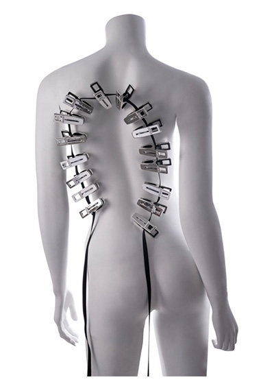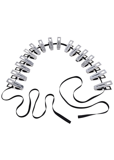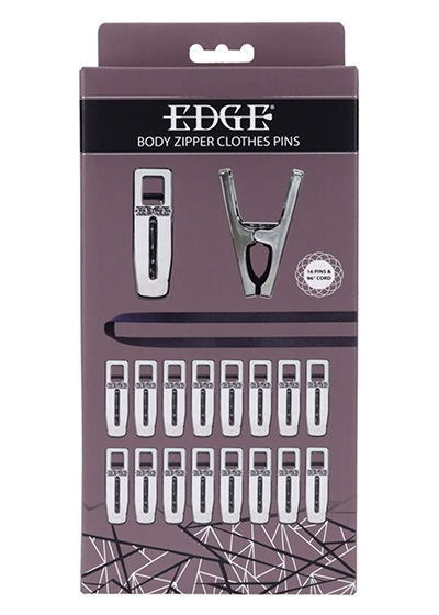 Submit to sensation. Suffer in sequence. The Edge® Body Zipper Clothes Pins turn steady tension into an overwhelming rush of sensation. Sixteen silverfinished clamps fasten to the skin, each one threading onto the included 8ft flat cord to create a line of