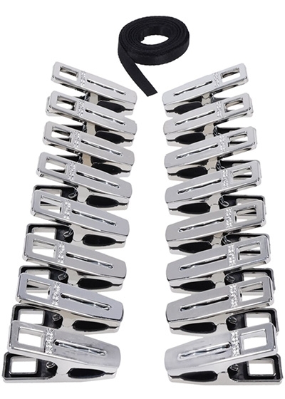 Sixteen silver, metal-like clothes pins with