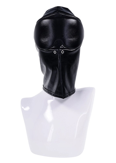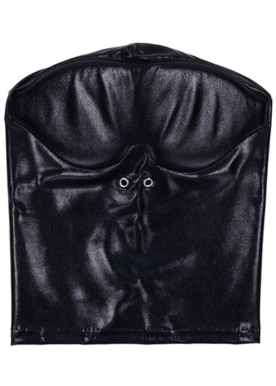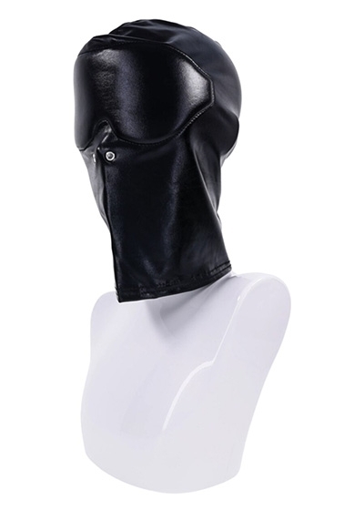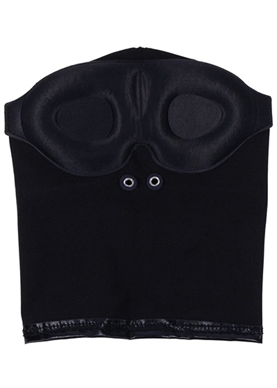 Disappear. Submit. The Edge® Black Out Hood erases identity and heightens every sense. Crafted from a sleek stretch material that molds to every contour, this full-coverage hood is built for comfort and complete sight deprivation. Extra padding surrounds the eyes, with contoured divots that allow them to remain open while keeping vision fully obscured. Two silver metal grommet nose vents maintain airflow through extended wear, while reinforced stitching ensures strength through every command and surrender. Designed for sensory deprivation and total submission, the Black Out Hood invites you to disappear completely and give in to control.