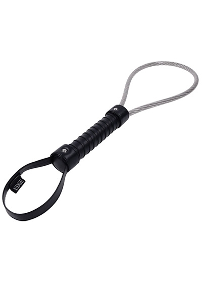 The Edge® Metal Loop Spanker delivers a sharp, resonant strike that demands instant attention. Built for players who crave precision and intensity, this tool features a black PU-wrapped handle with silver rivet detailing and a faux leather wrist loop for secure control. Its smooth, clear vinyl-coated loop encases a sturdy steel wire core, offering slight flex while maintaining punishing structure. The loop lands with a cutting swat that bites harder than a traditional paddle, echoing with that unmistakable rug-beater crack. Designed to withstand heavy, repeated use, the Edge® Metal Loop Spanker brings sting, sound, and absolute command to every session.