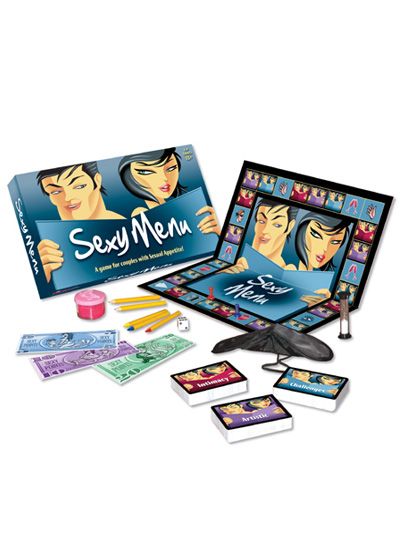 Sexy Menu is a stimulating game for couples who wish to spice up their lovelife! Sexy Menu is entertaining, funny and offers players the chance to give and/or receive many favors. Challenge your partner, express your artistic talents and earn memorable sexy favors... The goal of the game is to accumulate as many Sexy-Points as possible so you can order your favorite sexy meal, from the numerous options offered on the Sexy Menu. The game includes: 2 tokens - 1 die - 1 minute hourglass - 1 board 2 notepads - 2 pencils - 1 Sexy Menu - 1 blindfold 1 play dough - 3 body color crayons 54 Challenge cards - 54 Artistic cards - 54 Intimacy cards 25 vouchers worth 5 Sexy-Points 25 vouchers worth 10 Sexy-Points 25 vouchers worth 20 Sexy-Points
