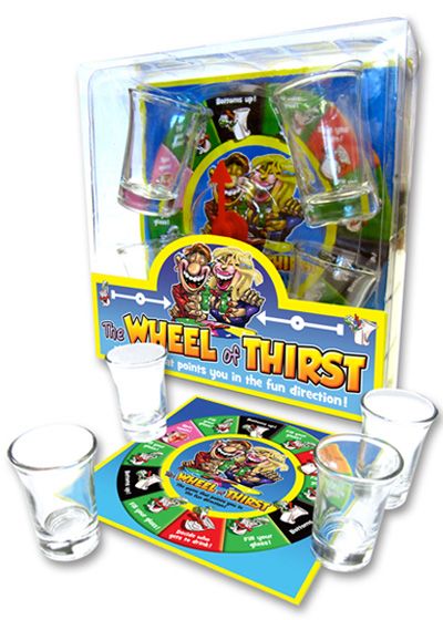 Fun new spinning drinking game! Points you in the direction of fun! 2 to 4 adult players. The Wheel Of Thirst from Ozze Creations.