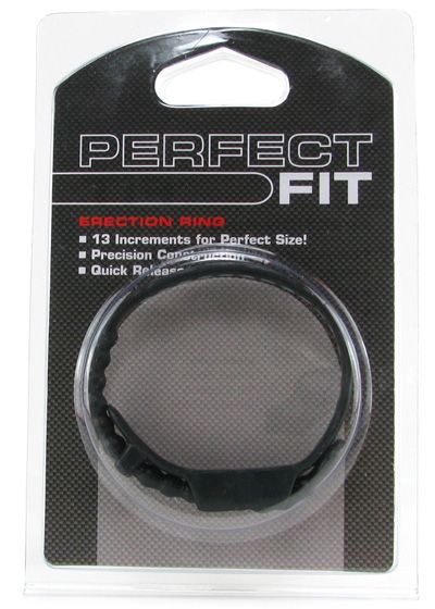 For the most precise, ideally customized fit each and every time you need or want a little extra firmness and longevity, the Perfect Fit Erection ring goes the extra mile to make sure you're comfortable and more than ready for action. This unique ring offers up 13 sizes, all of which are incredibly simple to adjust via an incremental locking system that stays secure, even when lube is added to the mix. The construction is ultra hardy and nice and flexible, letting you strap it on in a snap (literally) and release yourself just as quickly. For extra firmness and a bigger, thicker look and feel, simply loop the Ring over the base of the penis, or over the base of the penis and under the testicles, depending on how you choose to use, and snap into place. Made from phthalate free elastomer and plastic, the Perfect Fit is safe, hygienic and made to last. Compatible with both water and silicone based lubricants.