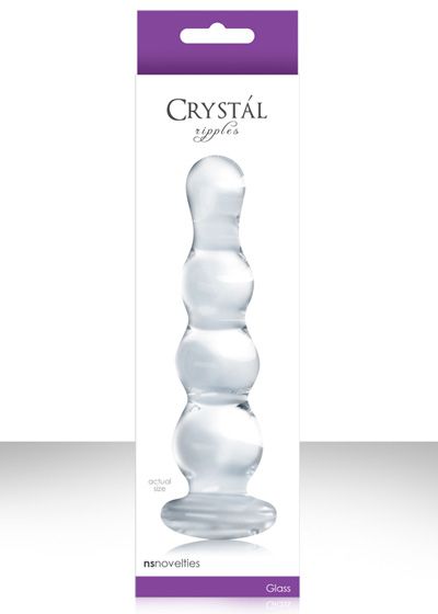 Shaped into thrilling curves that swell gradually in size as they ripple down to a uniquely contoured base, this versatile Crystal glass offering from ns novelties is manageable, precise and nothing if not satisfying. Ideal for teasingly shallow or dreamily deep penetration, the Ripples dildo functions wonderfully as either a vaginal or anal pleasure object.