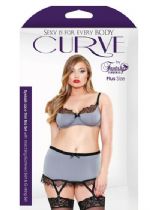 FL! Eyelash Lace Trim Bra Set with Matching Gartered Skirt & G-string Set Plus Size