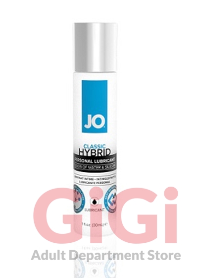 JO Hybrid is a silky smooth personal lubricant formulated with the finest quality Silicone ingredients and merged with our JO H20 water based lubricant. The merging of the two products creates a cutting edge lubricant that is long lasting and silky smooth, yet washes out easily with water and does not stain.