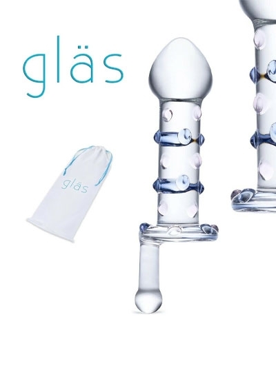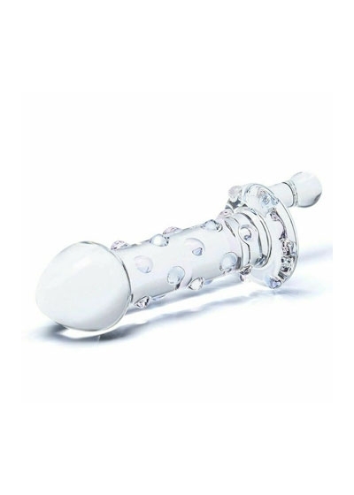 Crank the fun with this 6.75" glass dildo with hand crank. Hand crafted from body-safe, borosilicate (pyrex) glass. Can be heated or cooled with hot water or by putting into the freezer. Easy to clean. Non-pourous.